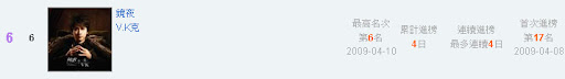 幾天沒有上網,回家一開電腦就看到好消息,是KKBOX的專輯排行榜,鏡夜已經在演奏音樂的排行榜,第六名囉!
